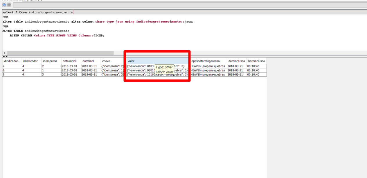 Citação de Kindrazki em 21 de março de 2018, 09:32Para alterar uma coluna para JSON em algumas versões antigas do banco de dados é necessário que a coluna não contenha nenhum dado;