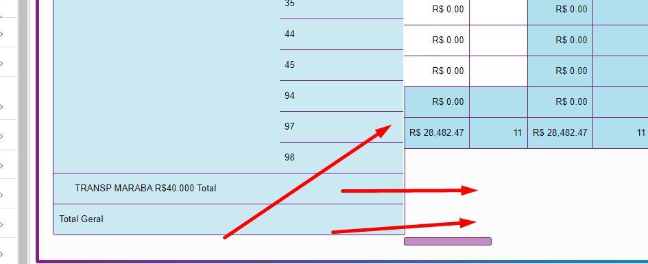 Totais em Cubo ficarem orientados na mesma linha das colunas.